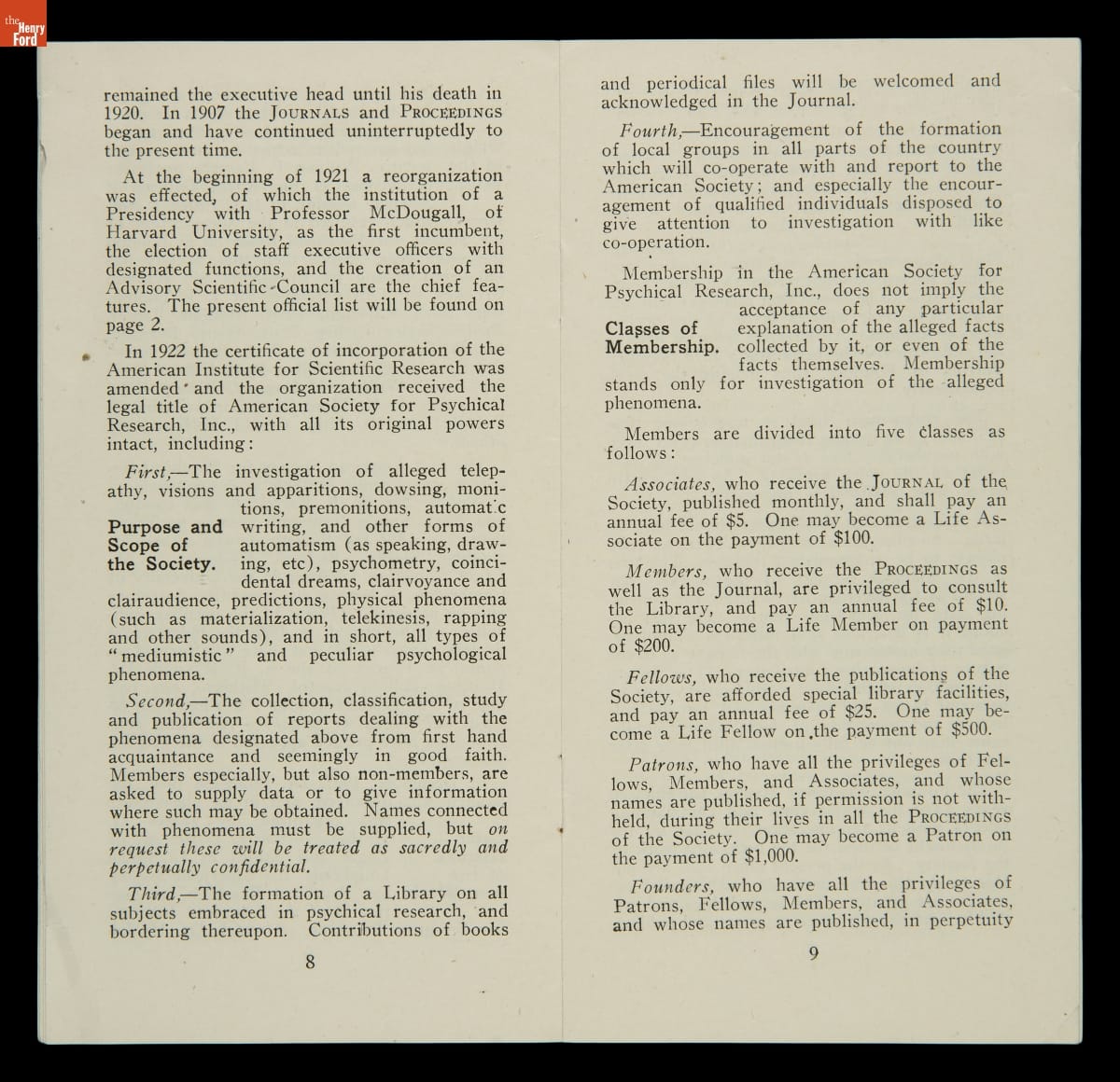 "American Society for Psychical Research, Inc. What It Is. What It Does. What it Publishes. How to Join It," 1921
