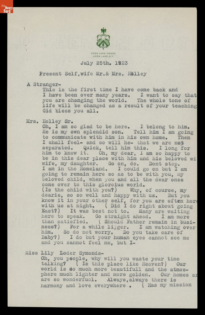 Account of a Seance Performed by Rev. D.A. Herrick, July 25, 1923