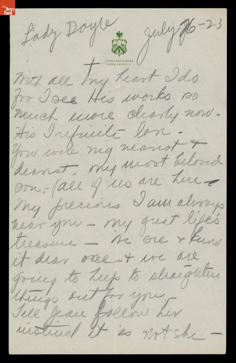 Transcript regarding Lady Jean Doyle, July 26, 1923