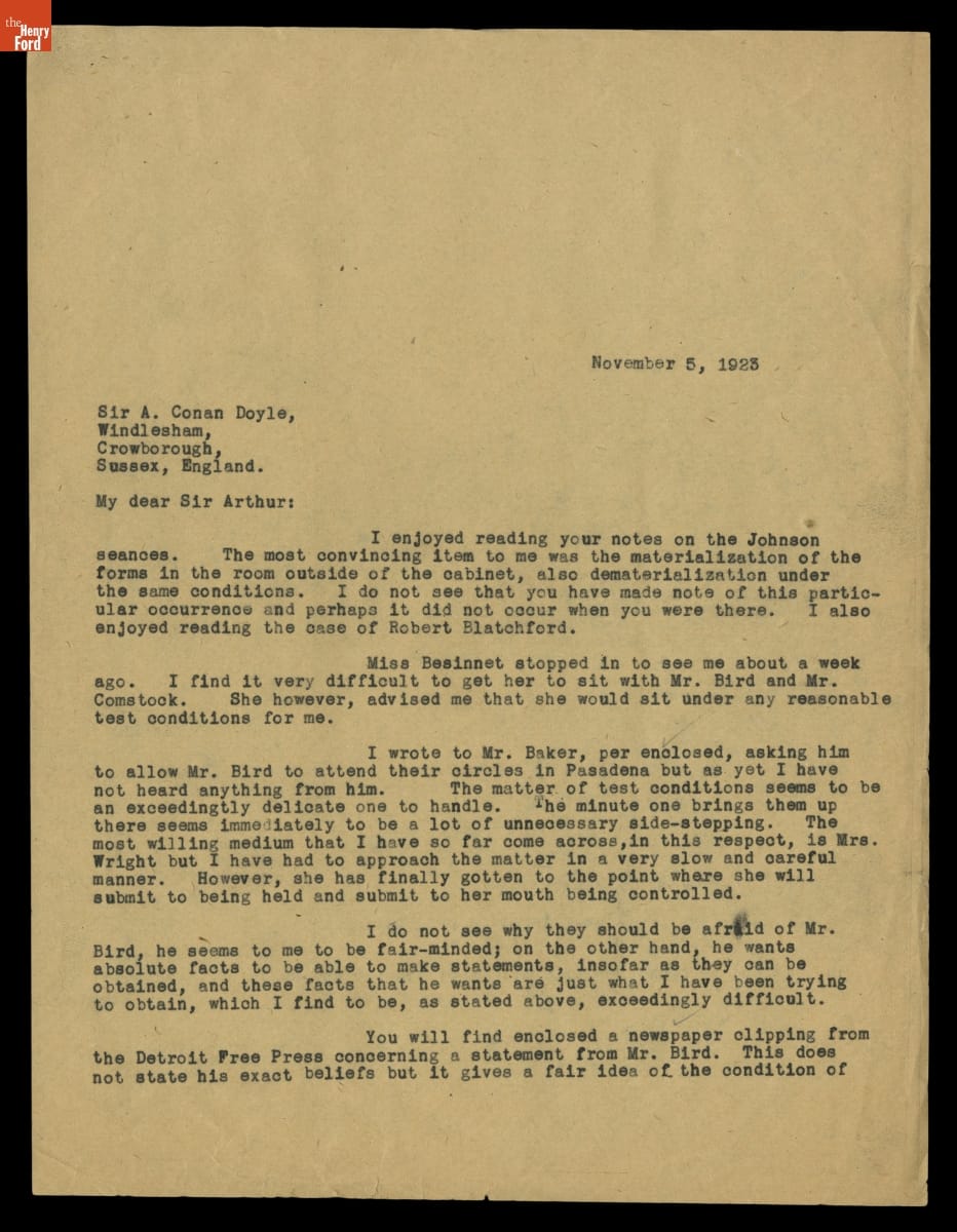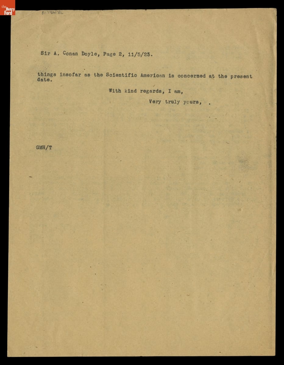 Letter from George M. Holley to Arthur Conan Doyle, November 5, 1923