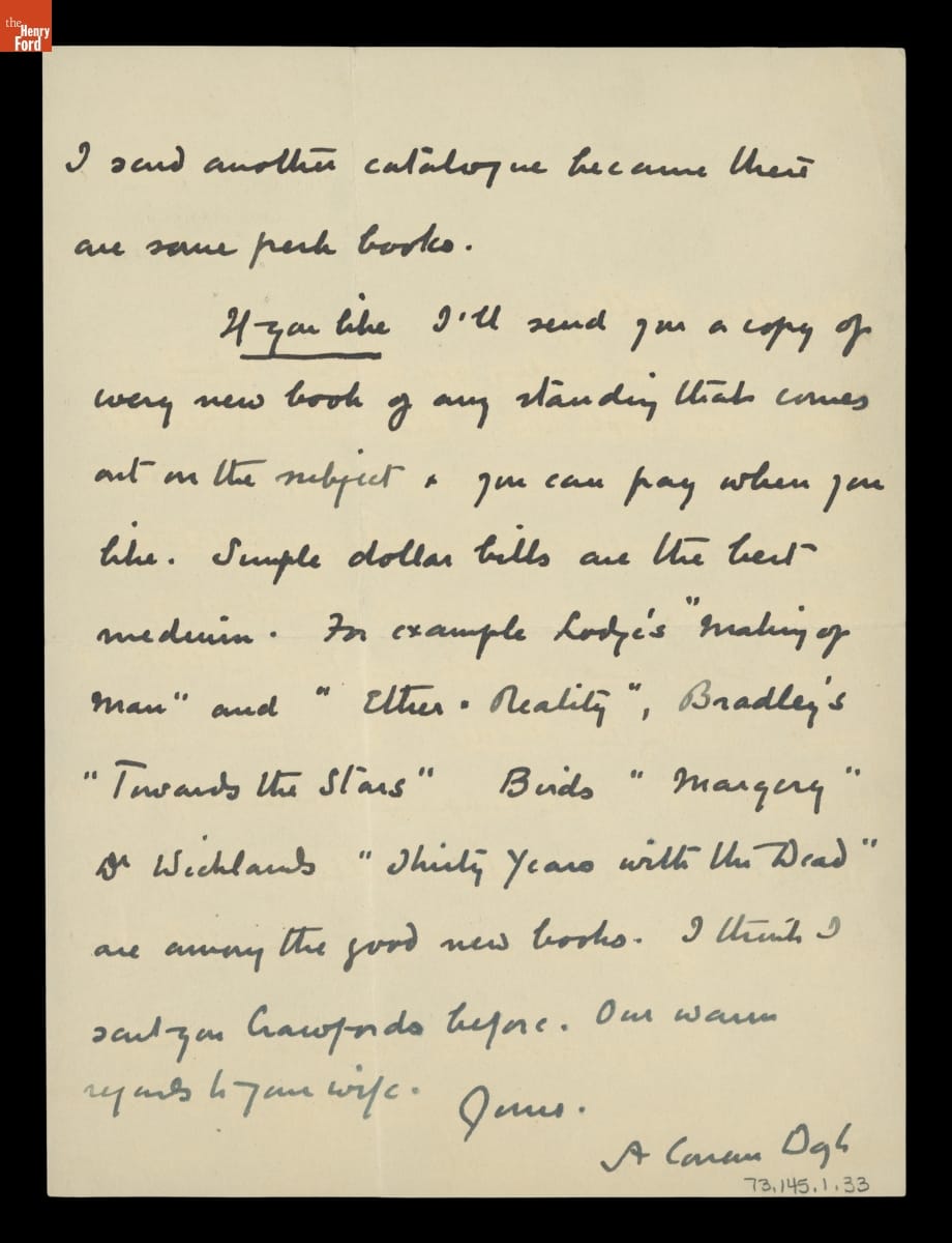 George Holley, founder of Holley Motor Company, and Sir Arthur Conan Doyle, famed author, became acquainted after Holley attended one of Doyle's lectures in Detroit. From 1923 to 1929, the two maintained a robust correspondence. Spiritualism was a frequent topic as they traded recommendations of mediums, bemoaned skeptics like Harry Houdini, and discussed the state of belief on both sides of the Atlantic.