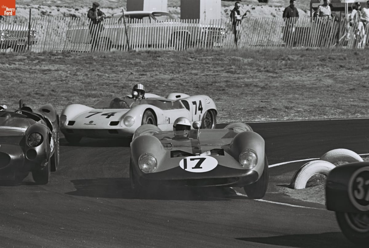 Dave Friedman captured and preserved auto racing history through his photography. His work -- and his collection of works by other photographers -- documents key races, cars, drivers, and teams. This photo is from the 1964 Monterey Grand Prix, held at Laguna Seca Raceway near Monterey, California. Roger Penske won the overall victory with the #66 Chevrolet-powered Chaparral 2A.