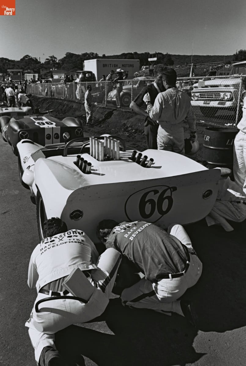 Dave Friedman captured and preserved auto racing history through his photography. His work -- and his collection of works by other photographers -- documents key races, cars, drivers, and teams. This photo is from the 1964 Monterey Grand Prix, held at Laguna Seca Raceway near Monterey, California. Roger Penske won the overall victory with the #66 Chevrolet-powered Chaparral 2A.