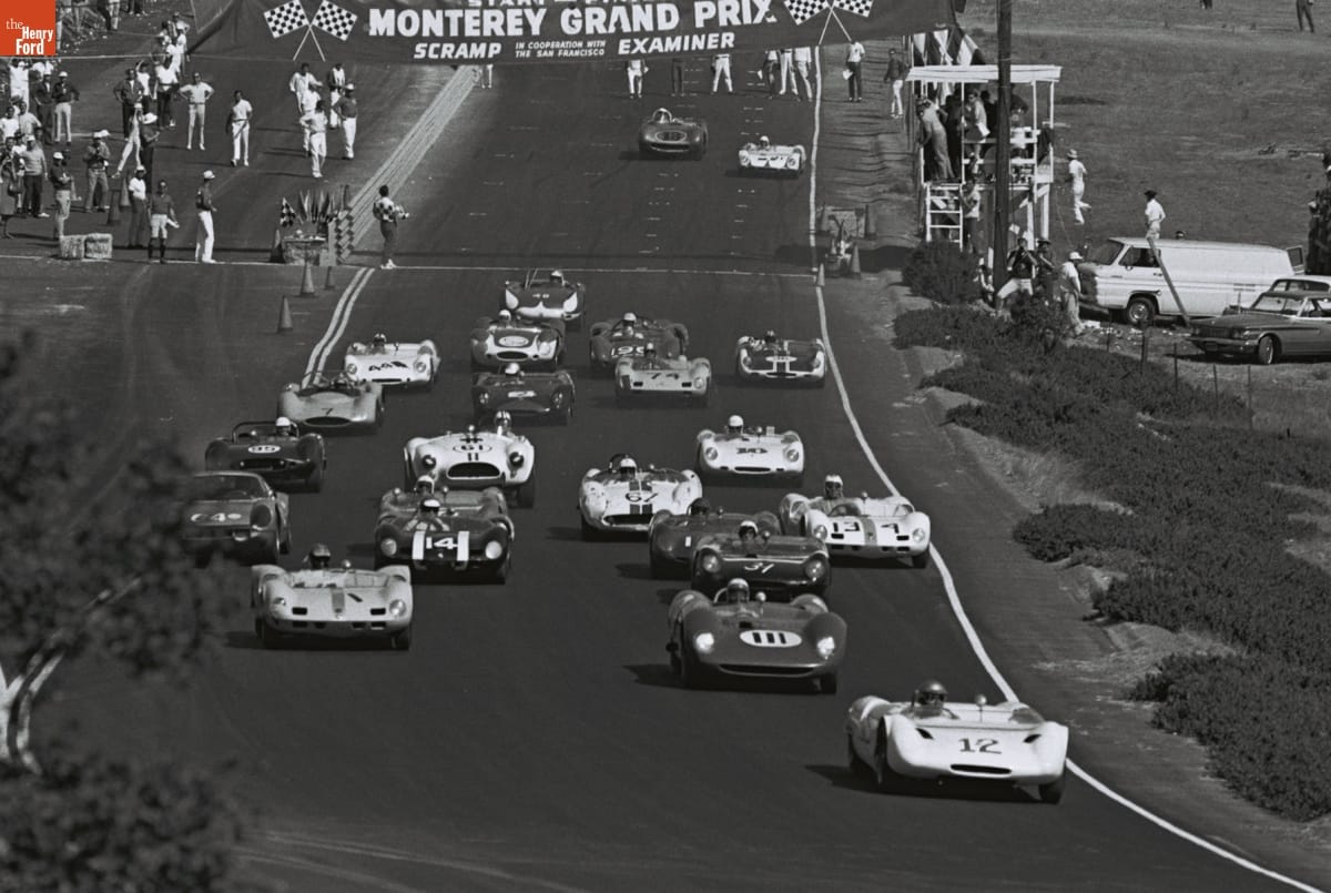 Dave Friedman captured and preserved auto racing history through his photography. His work -- and his collection of works by other photographers -- documents key races, cars, drivers, and teams. This photo is from the 1964 Monterey Grand Prix, held at Laguna Seca Raceway near Monterey, California. Roger Penske won the overall victory with the #66 Chevrolet-powered Chaparral 2A.