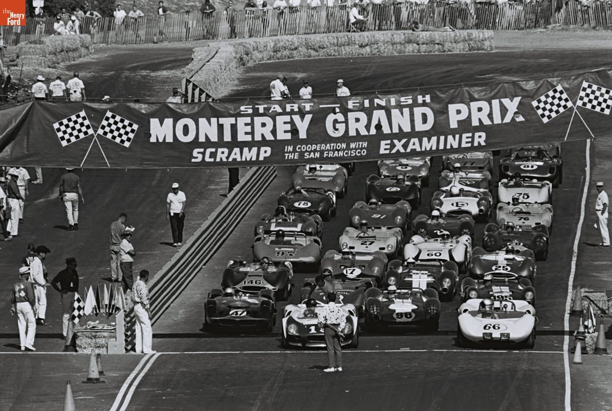 Dave Friedman captured and preserved auto racing history through his photography. His work -- and his collection of works by other photographers -- documents key races, cars, drivers, and teams. This photo is from the 1964 Monterey Grand Prix, held at Laguna Seca Raceway near Monterey, California. Roger Penske won the overall victory with the #66 Chevrolet-powered Chaparral 2A.
