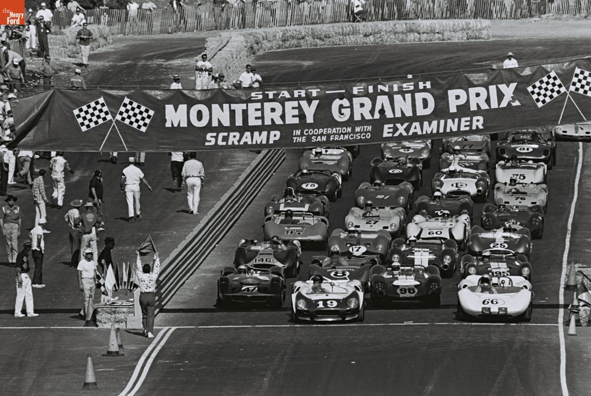 Dave Friedman captured and preserved auto racing history through his photography. His work -- and his collection of works by other photographers -- documents key races, cars, drivers, and teams. This photo is from the 1964 Monterey Grand Prix, held at Laguna Seca Raceway near Monterey, California. Roger Penske won the overall victory with the #66 Chevrolet-powered Chaparral 2A.