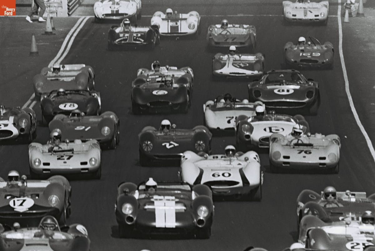 Dave Friedman captured and preserved auto racing history through his photography. His work -- and his collection of works by other photographers -- documents key races, cars, drivers, and teams. This photo is from the 1964 Monterey Grand Prix, held at Laguna Seca Raceway near Monterey, California. Roger Penske won the overall victory with the #66 Chevrolet-powered Chaparral 2A.