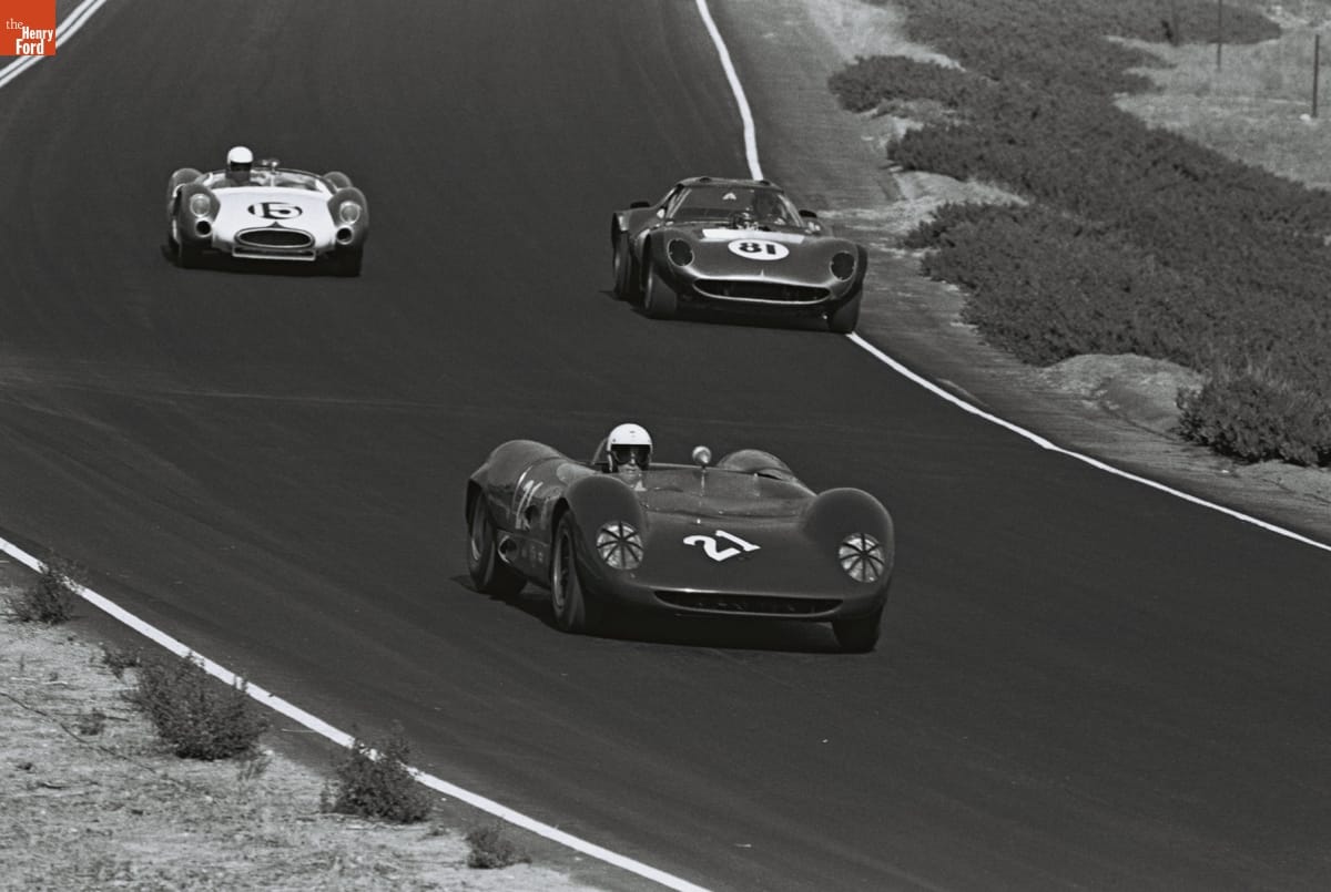 Dave Friedman captured and preserved auto racing history through his photography. His work -- and his collection of works by other photographers -- documents key races, cars, drivers, and teams. This photo is from the 1964 Monterey Grand Prix, held at Laguna Seca Raceway near Monterey, California. Roger Penske won the overall victory with the #66 Chevrolet-powered Chaparral 2A.