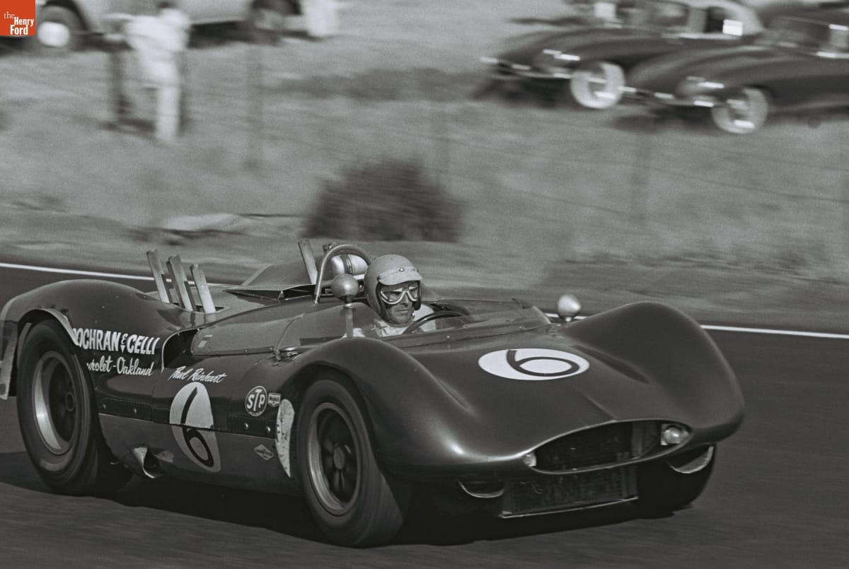 Dave Friedman captured and preserved auto racing history through his photography. His work -- and his collection of works by other photographers -- documents key races, cars, drivers, and teams. This photo is from the 1964 Monterey Grand Prix, held at Laguna Seca Raceway near Monterey, California. Roger Penske won the overall victory with the #66 Chevrolet-powered Chaparral 2A.