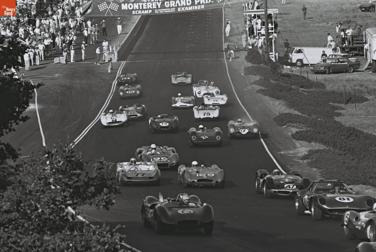 Dave Friedman captured and preserved auto racing history through his photography. His work -- and his collection of works by other photographers -- documents key races, cars, drivers, and teams. This photo is from the 1964 Monterey Grand Prix, held at Laguna Seca Raceway near Monterey, California. Roger Penske won the overall victory with the #66 Chevrolet-powered Chaparral 2A.