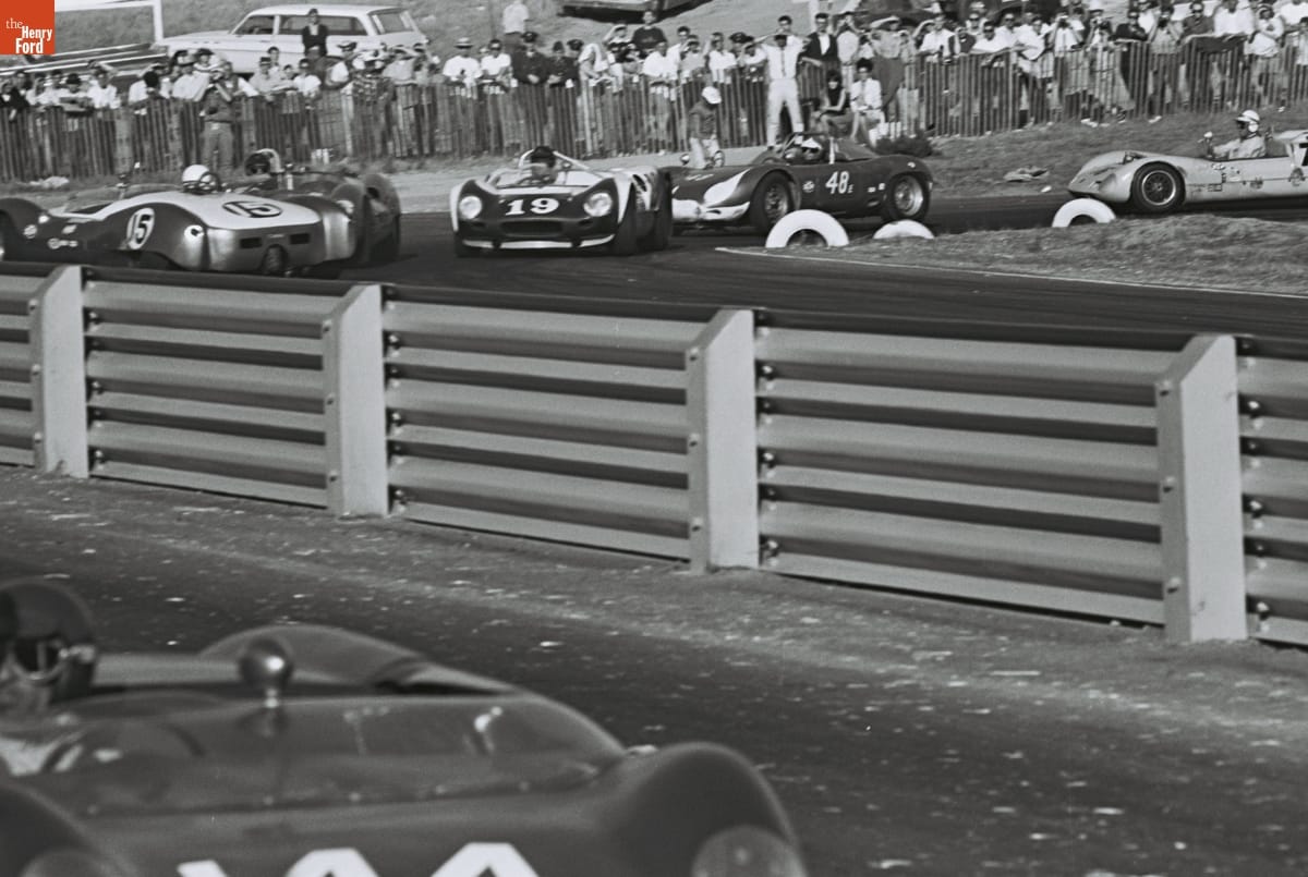 Dave Friedman captured and preserved auto racing history through his photography. His work -- and his collection of works by other photographers -- documents key races, cars, drivers, and teams. This photo is from the 1964 Monterey Grand Prix, held at Laguna Seca Raceway near Monterey, California. Roger Penske won the overall victory with the #66 Chevrolet-powered Chaparral 2A.