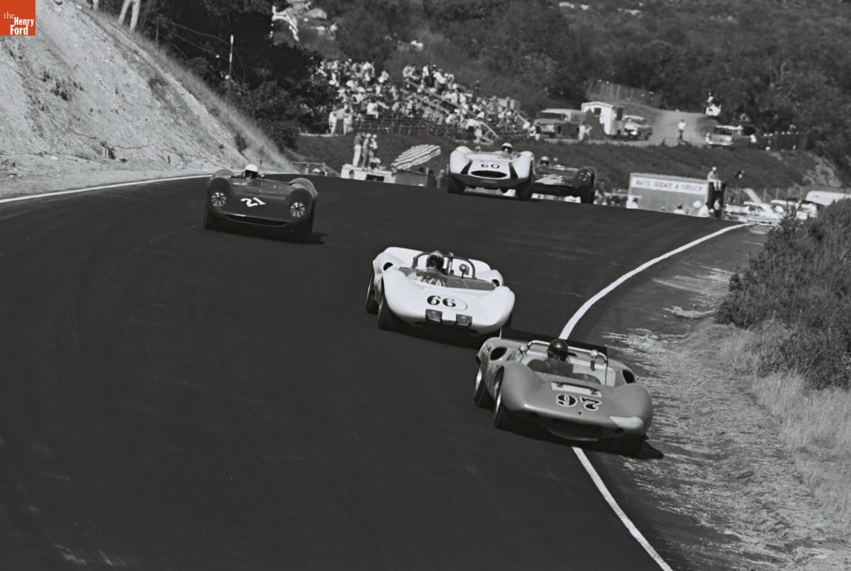 Dave Friedman captured and preserved auto racing history through his photography. His work -- and his collection of works by other photographers -- documents key races, cars, drivers, and teams. This photo is from the 1964 Monterey Grand Prix, held at Laguna Seca Raceway near Monterey, California. Roger Penske won the overall victory with the #66 Chevrolet-powered Chaparral 2A.