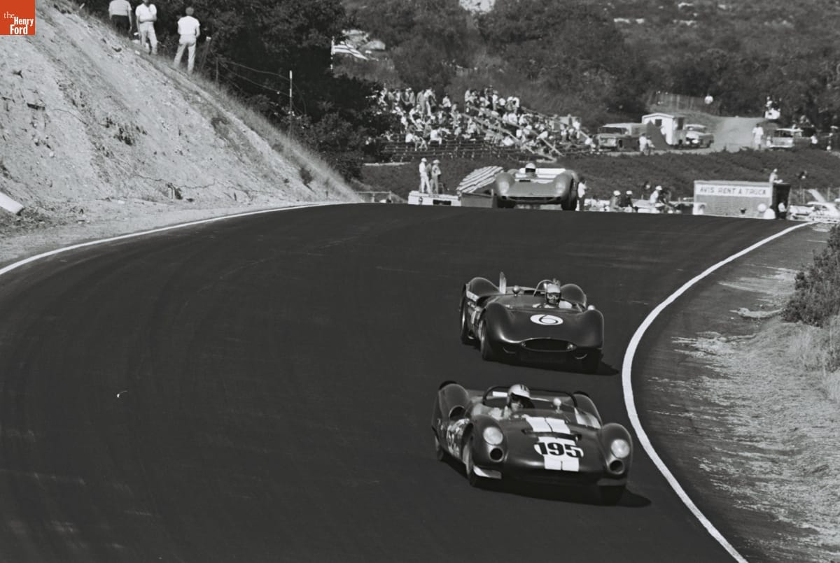 Dave Friedman captured and preserved auto racing history through his photography. His work -- and his collection of works by other photographers -- documents key races, cars, drivers, and teams. This photo is from the 1964 Monterey Grand Prix, held at Laguna Seca Raceway near Monterey, California. Roger Penske won the overall victory with the #66 Chevrolet-powered Chaparral 2A.