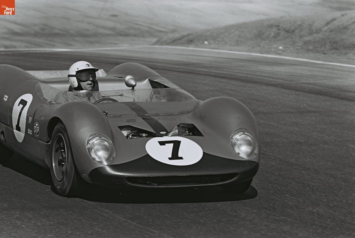 Dave Friedman captured and preserved auto racing history through his photography. His work -- and his collection of works by other photographers -- documents key races, cars, drivers, and teams. This photo is from the 1964 Monterey Grand Prix, held at Laguna Seca Raceway near Monterey, California. Roger Penske won the overall victory with the #66 Chevrolet-powered Chaparral 2A.