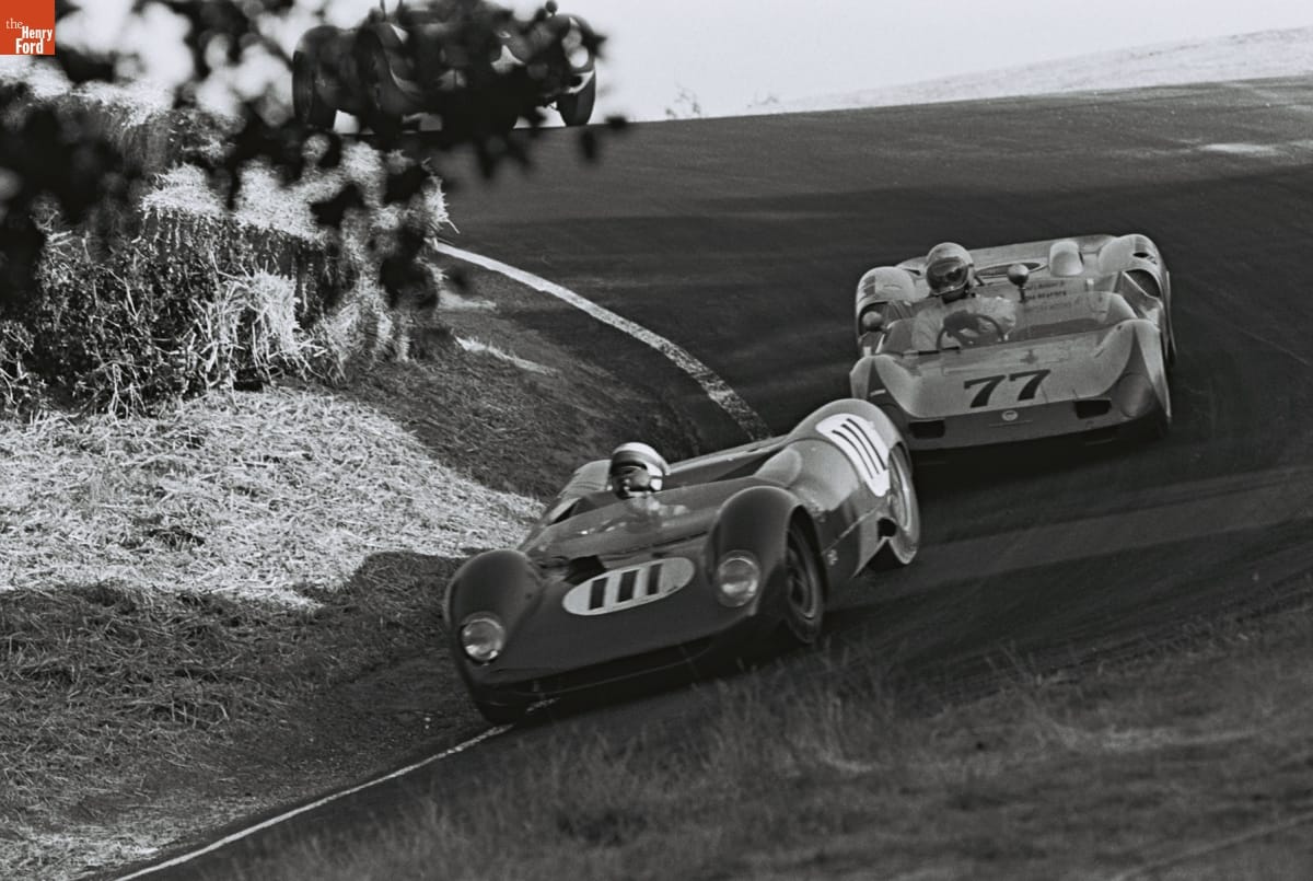 Dave Friedman captured and preserved auto racing history through his photography. His work -- and his collection of works by other photographers -- documents key races, cars, drivers, and teams. This photo is from the 1964 Monterey Grand Prix, held at Laguna Seca Raceway near Monterey, California. Roger Penske won the overall victory with the #66 Chevrolet-powered Chaparral 2A.