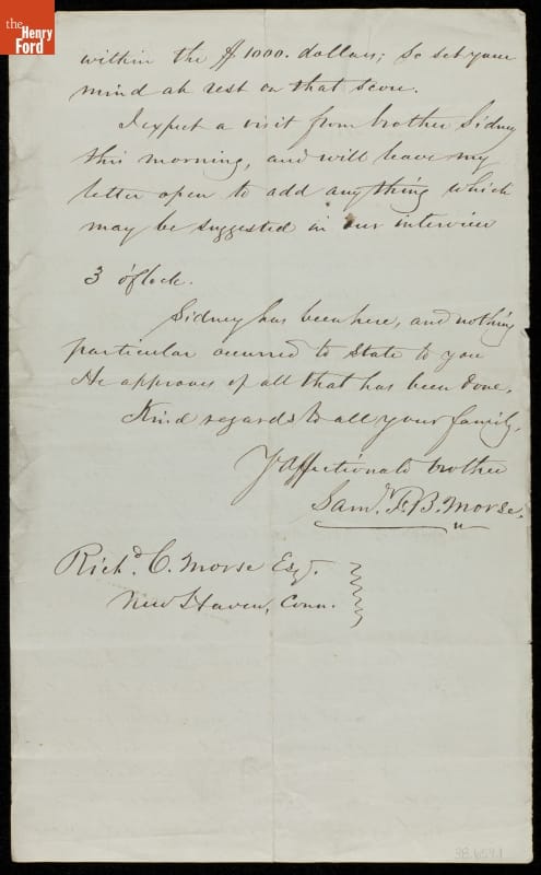 Letter from Samuel F. B. Morse to his Brother, Richard C. Morse, 1865