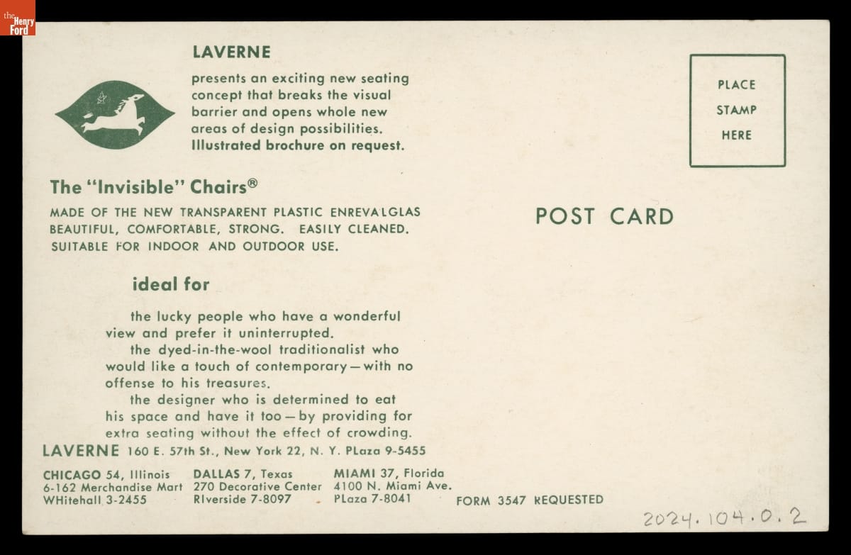 "'Invisible' Chairs by Laverne, Jonquil (left) and Daffodil," 1957-1959