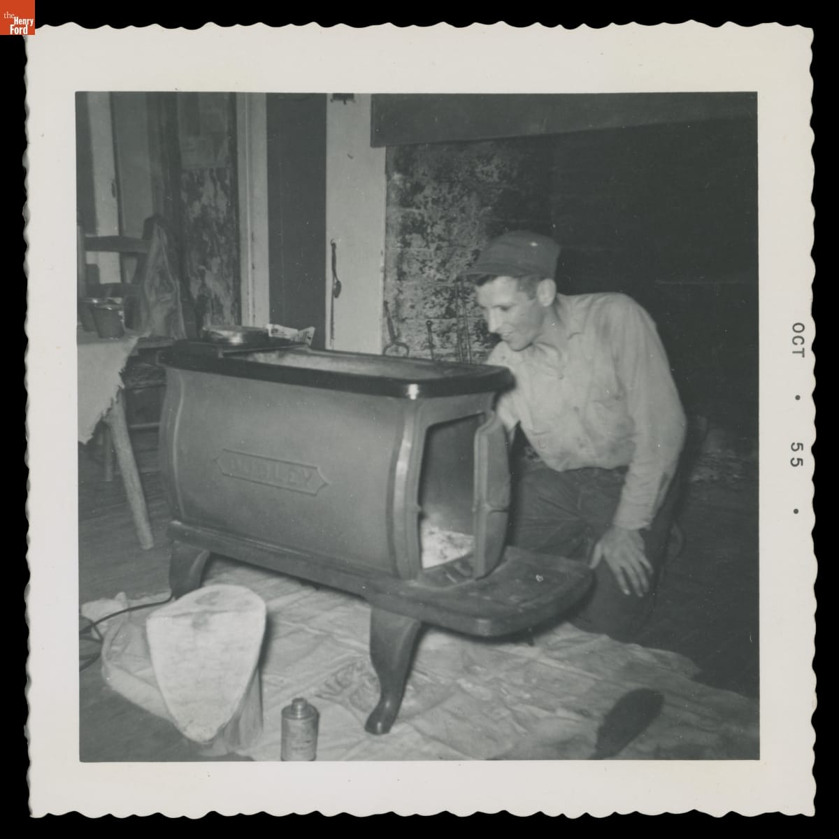 Bob Kelley Maintaining the Heating Stove in the Kelley Farmhouse, Andover, Connecticut, 1955