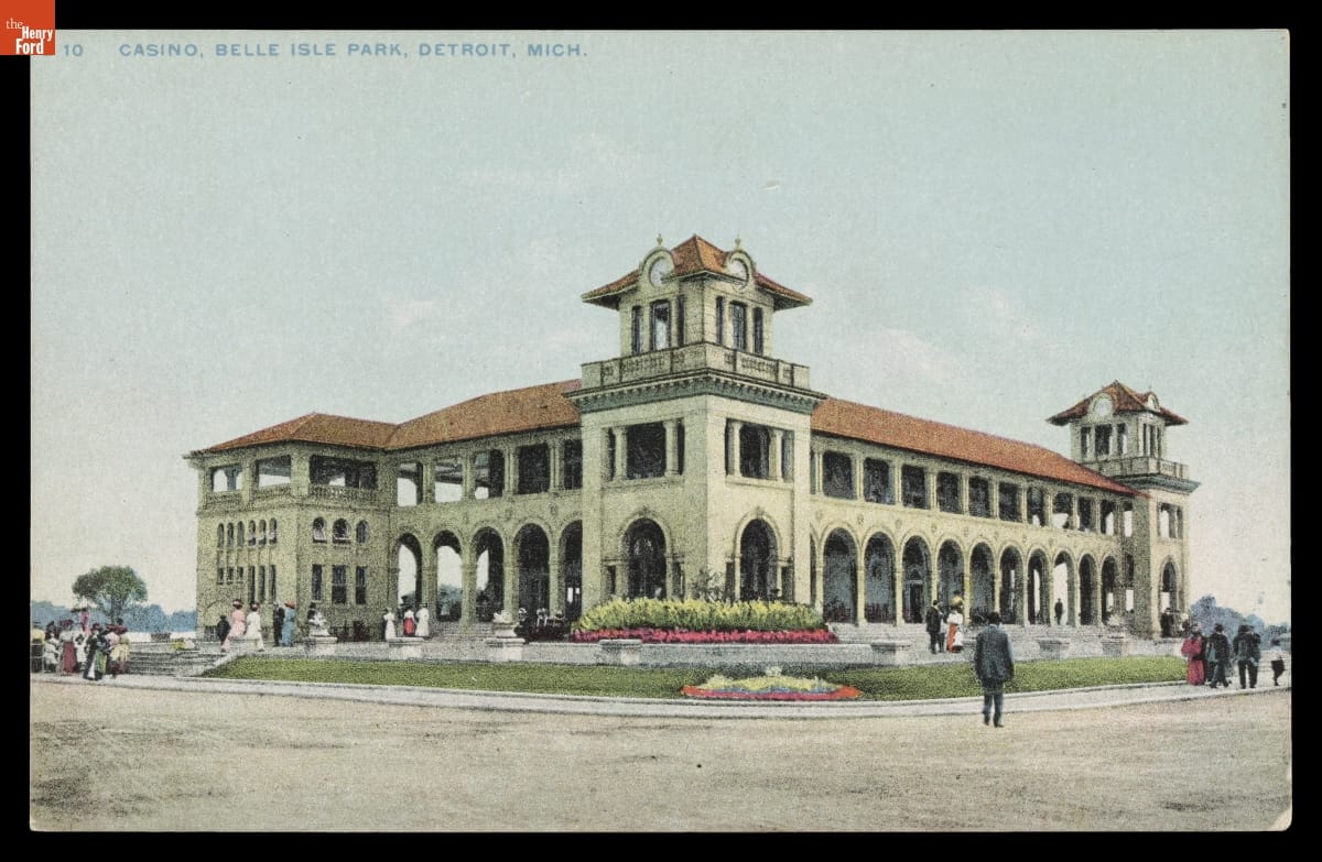 The Belle Isle Casino in Detroit, Michigan is not used for gambling; instead, it is an event space, reflecting the word's original definition: "a public room." The current Belle Isle Casino opened in 1908 and served as a popular destination for gathering, dancing, and dining throughout the first half of the twentieth century.