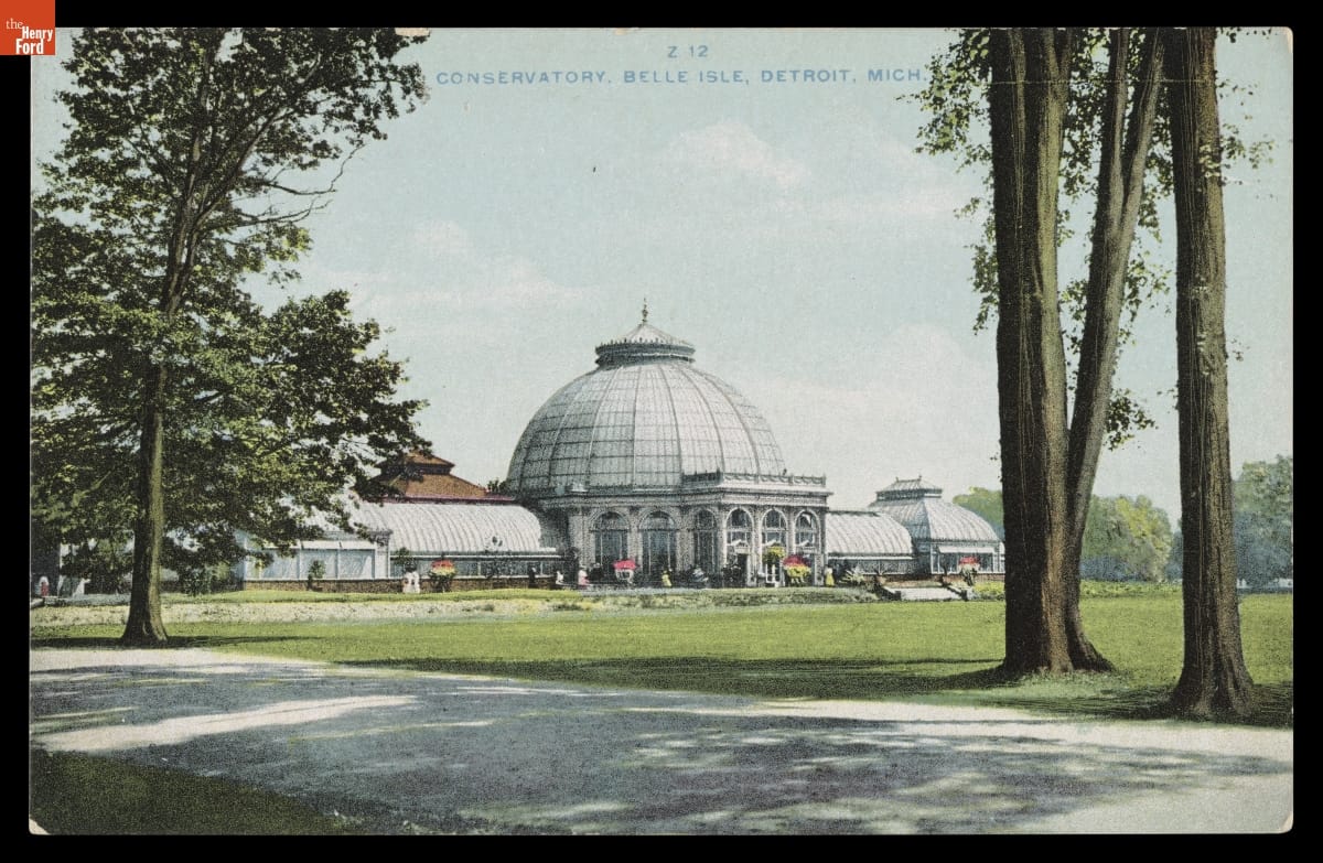 The Belle Isle Conservatory opened in Detroit, Michigan in 1904. It was part of the City Beautiful movement championed by American city planners to encourage civic pride through beautiful design. Architect Albert Kahn drew inspiration from architectural wonders such as Thomas Jefferson's Monticello, the Crystal Palace in London, and the White City in Chicago when creating the conservatory.