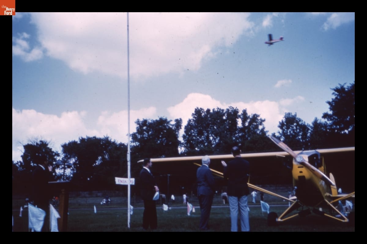 Presentation of 1946 Piper Cub J-3 Airplane at Old Car Festival in Greenfield Village, September 1961