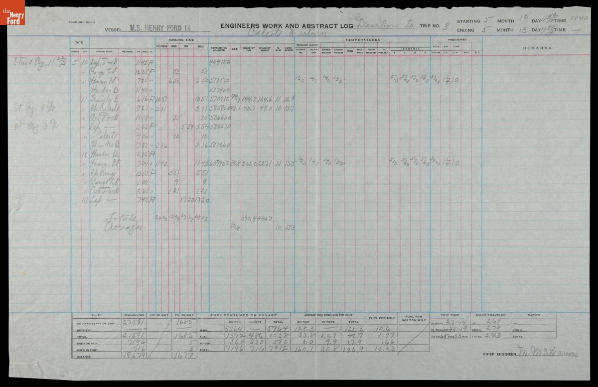 Ship's Log for MS Henry Ford II, Trip 3, May 10-13, 1940