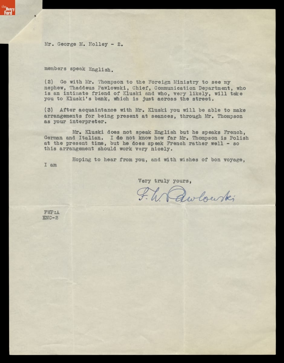 Letter from F.W. Pawlowski to George M. Holley, May 2, 1929