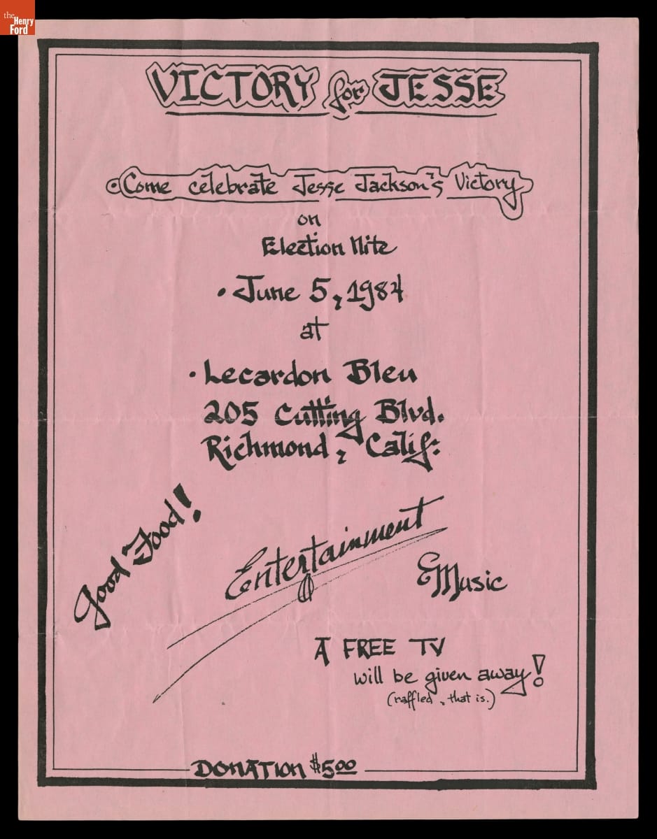 "Victory for Jesse: Come Celebrate Jesse Jackson's Victory on Election Nite," June 5, 1984