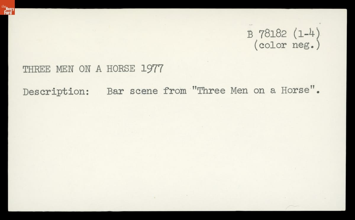 Bar Scene from the Play "Three Men on a Horse," Henry Ford Museum Theater, 1977