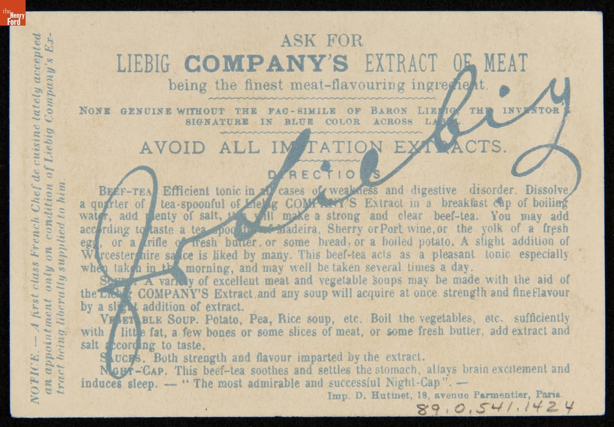 Trade Card for Liebig Extract of Meat Company Products, 1880-1900