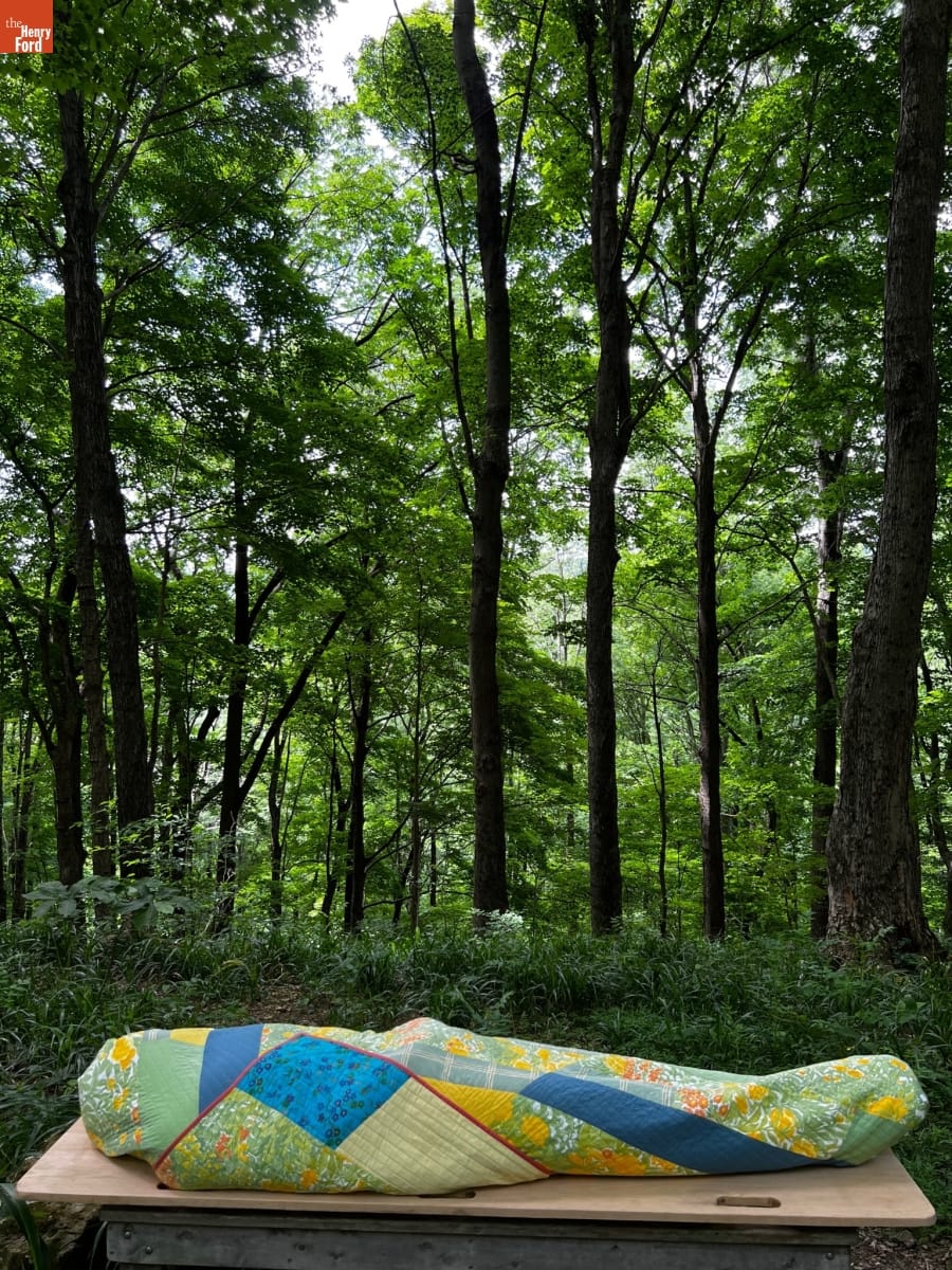 Demonstration of "Cathedral" Burial Quilt Made by Zak Foster, 2022