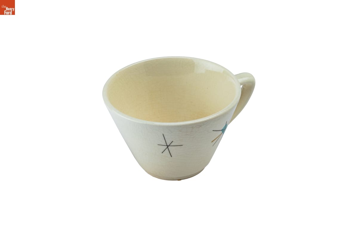 Industrial designer Victor Schreckengost created "Hopscotch" pattern dinnerware for the Salem China Company in the mid-1950s. Though fashionable, it was expensive to produce, and sales lagged. The Ohio-based company simplified the design and renamed it "North Star." Sold from 1957 to 1967 in retail stores and wholesaled to supermarket chains as a promotional item, "North Star" is emblematic of modern middle-class tastes of the time.