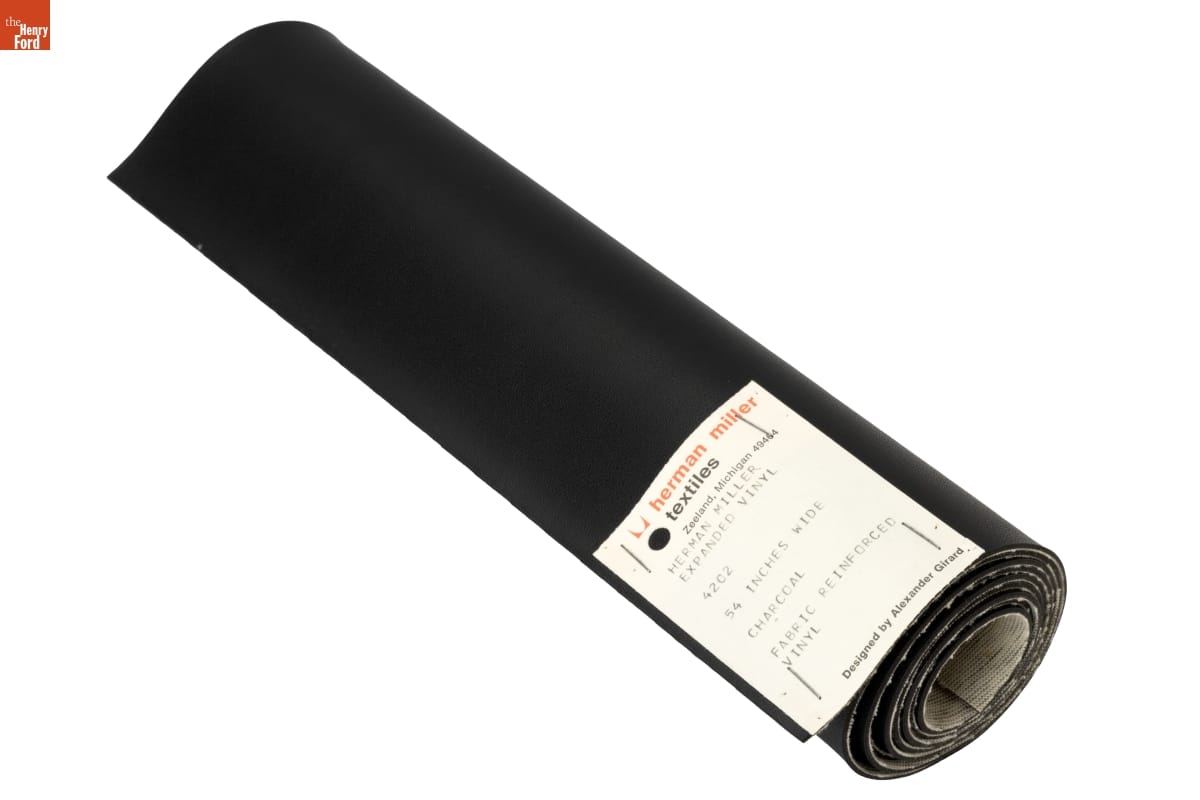 herman miller / textiles / Zeeland, Michigan 49464 / HERMAN MILLER / EXPANDED VINYL / 4202 / 54 INCHES WIDE / CHARCOAL / FABRIC REINFORCED / VINYL / Designed by Alexander Girard
