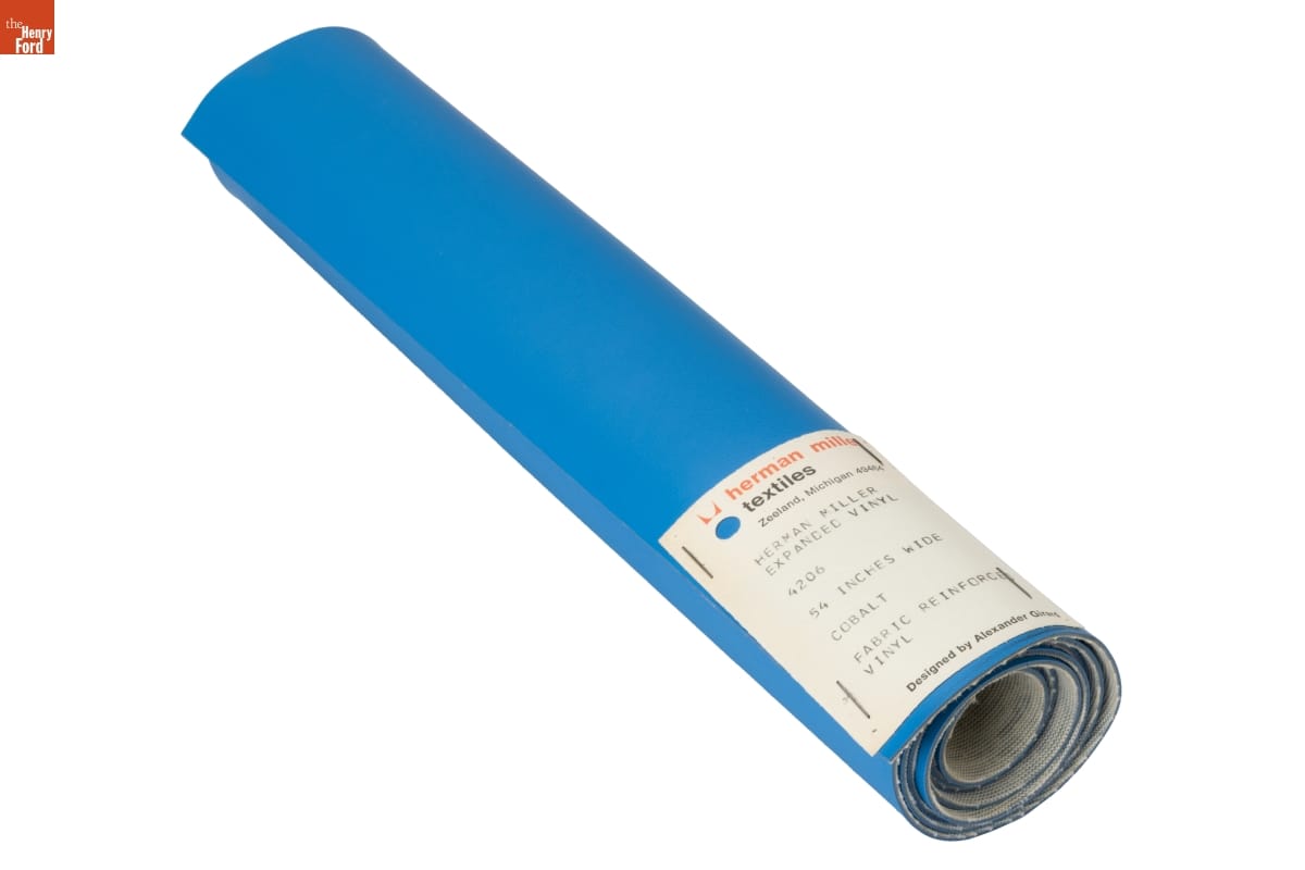herman miller / textiles / Zeeland, Michigan 49464 / HERMAN MILLER / EXPANDED VINYL / 4206 / 54 INCHES WIDE / COBALT / FABRIC REINFORCED / VINYL / Designed by Alexander Girard
