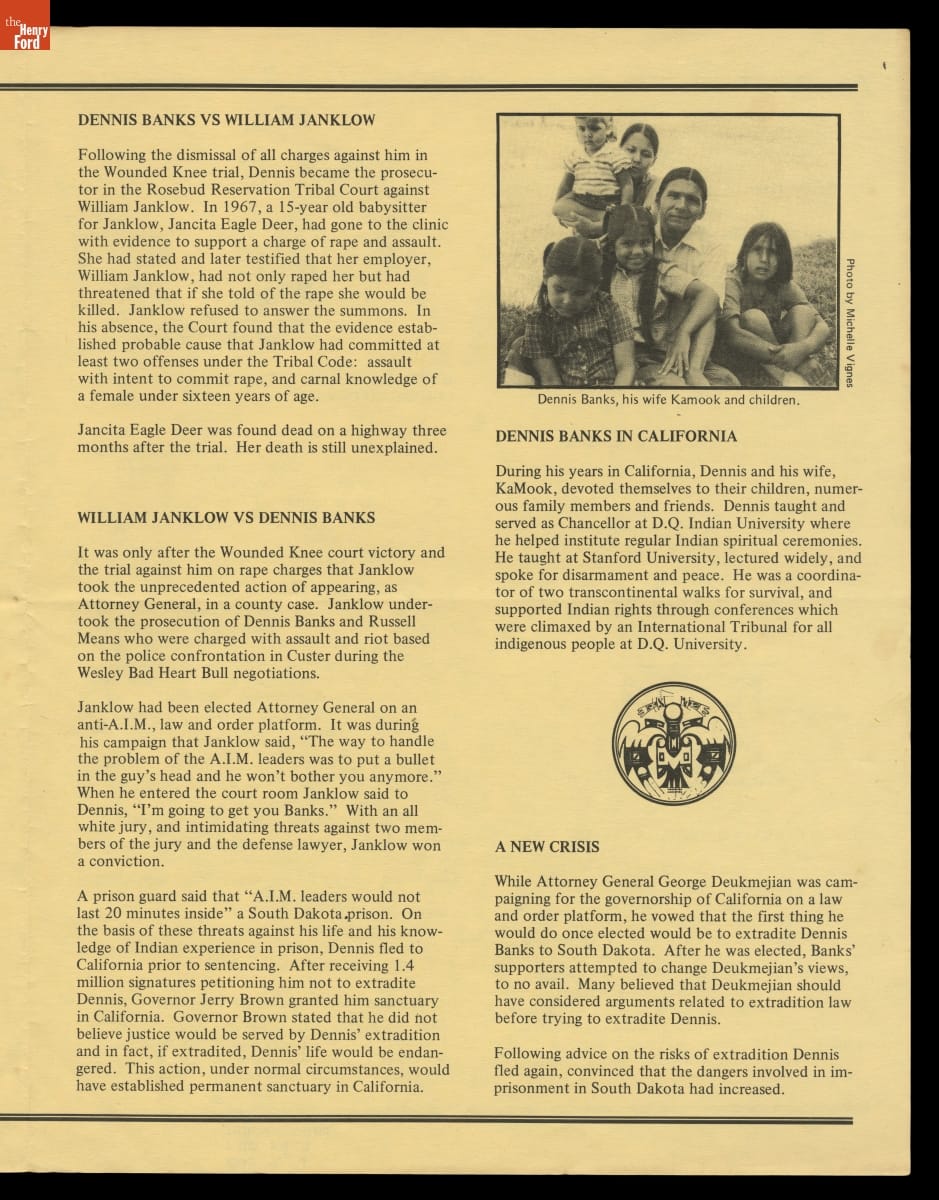 "Dennis Banks: A Short History and Update," circa 1983