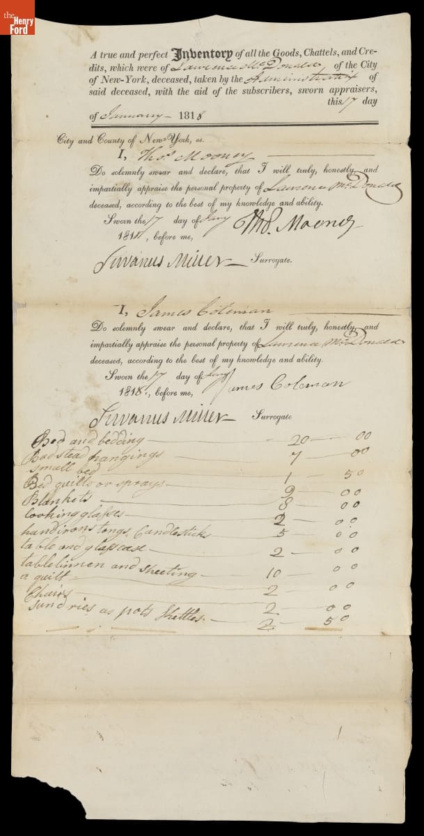 Estate Inventory of Lawrence McDonald, Filed January 17, 1818