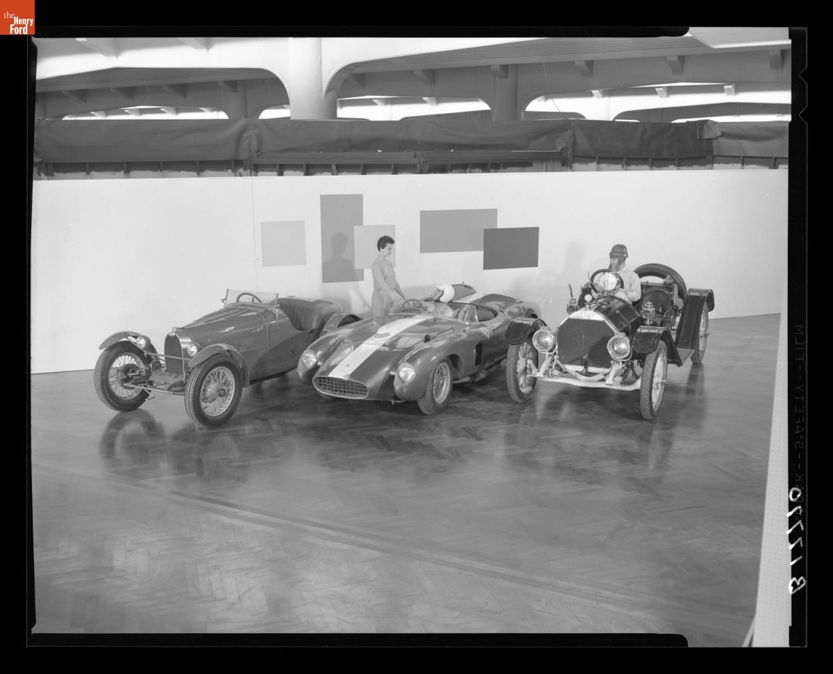 From 1953 through 1977, Henry Ford Museum staged its annual Sports Cars in Review exhibit each winter. The show featured a mix of early and contemporary sports cars, race cars and concept cars. Some of the participating vehicles came from the museum's own collection, but many were loaned by other museums and private owners.