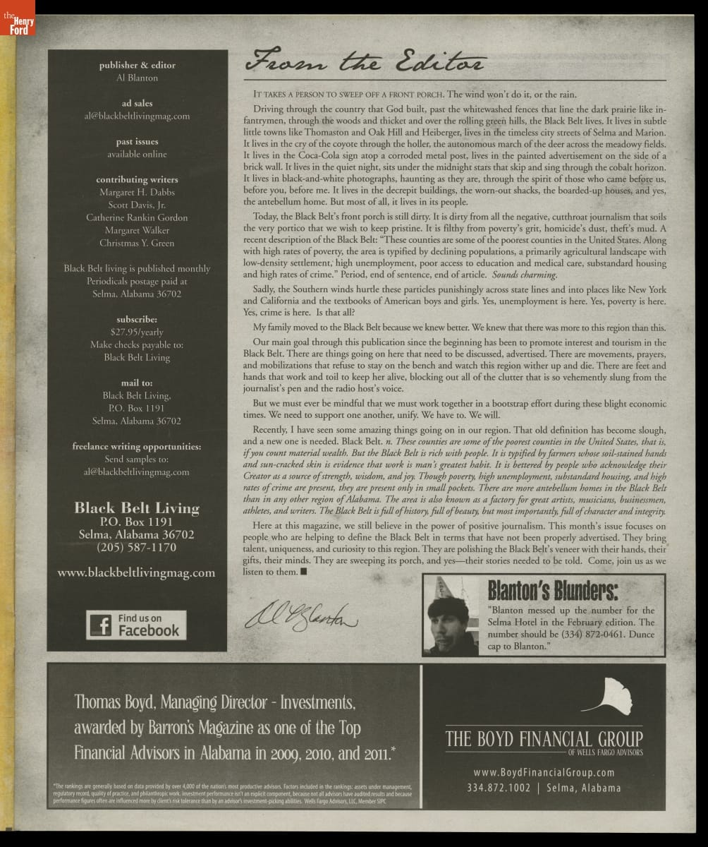 "Black Belt Living: The Voice of the Black Belt," Issue 7, April 2012