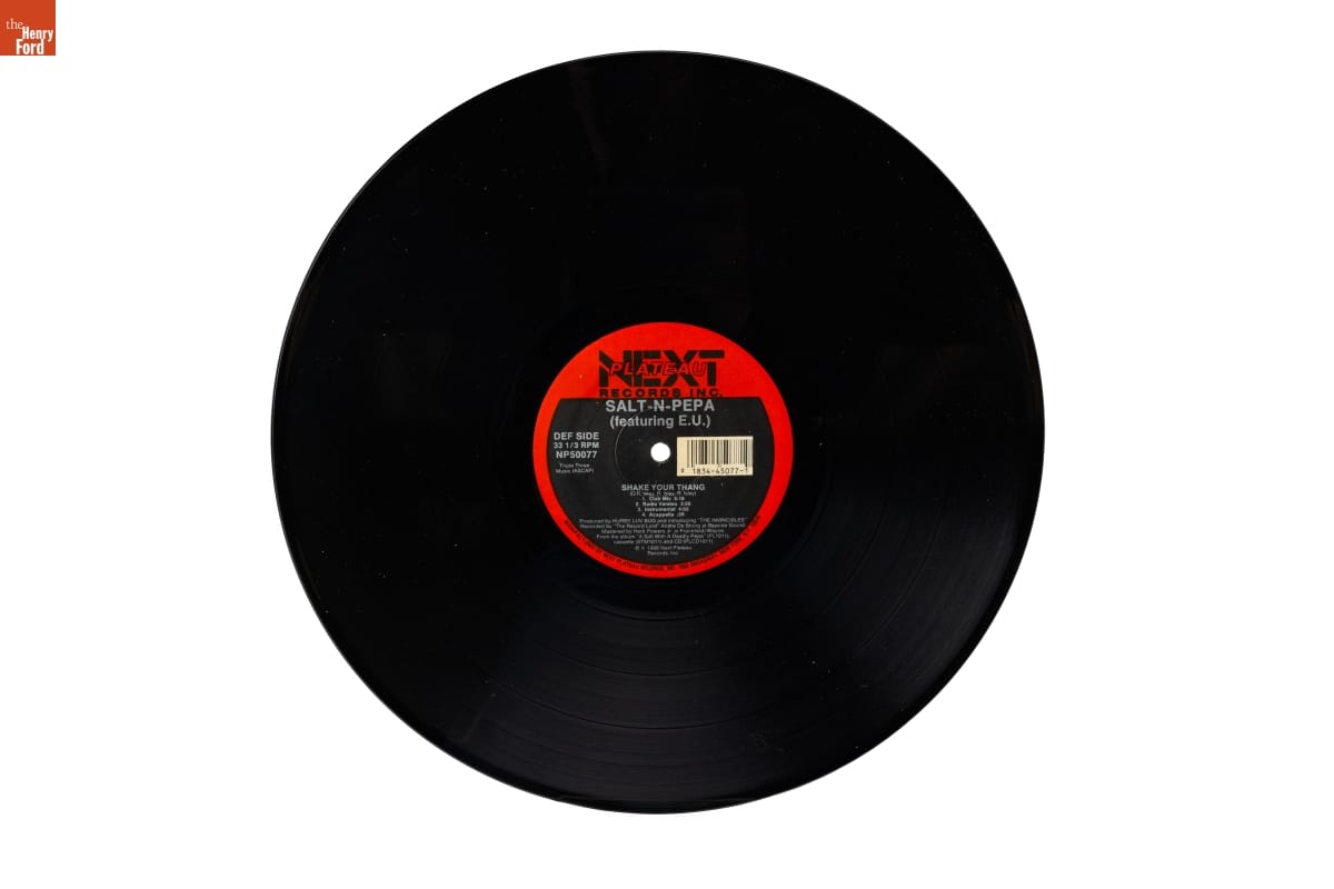 NEXT/ PLATEAU / RECORDS, INC. / SALT-N-PEPA / (featuring E. U.) / DEF SIDE / 33 1/3 RPM / NP50077 / Triple Three / (Music (ASCAP) / [...] / SHAKE YOUR THANG / (O. K. Isley, R. Isley, R. Isley) / 1. Club Mix 5:16 / 2. Radio Version 3:59 / 3. Instrumental 4:02 / 4. Acappella :28 / [...] / [P] [C] 1988 Next Plateau / Records, Inc. / MANUFACTURED BY NEXT PLATEAU RECORDS, INC. 1650 BROADWAY, NEW YORK, N. Y. 10019