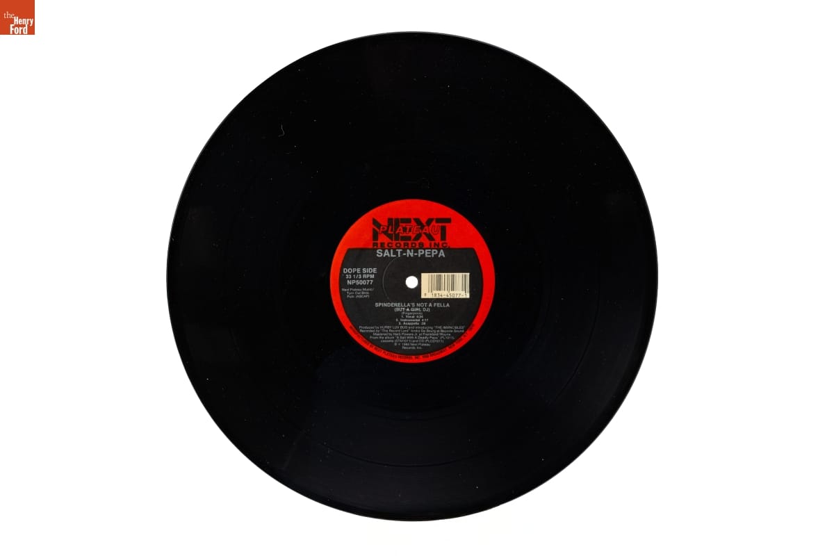NEXT / PLATEAU / RECORDS. INC. / SALT-N-PEPA / DOPE SIDE / 33 1/3 RPM / NP50077 / Next Plateau Music / Turn Out Bros. / Publ. (ASCAP) / [...] / SPINDERELLA'S NOT A FELLA / (BUT A GIRL DJ) / (Fingerprints) / 1. Vocal 4:24 / 2. Instrumental 4:17 / 3. Acappella :38 / [...] / [P] [C] 1988 Next Plateau / Records, Inc. / MANUFACTURED BY NEXT PLATEAU RECORDS, INC. 1650 BROADWAY, NEW YORK, N. Y. 10019