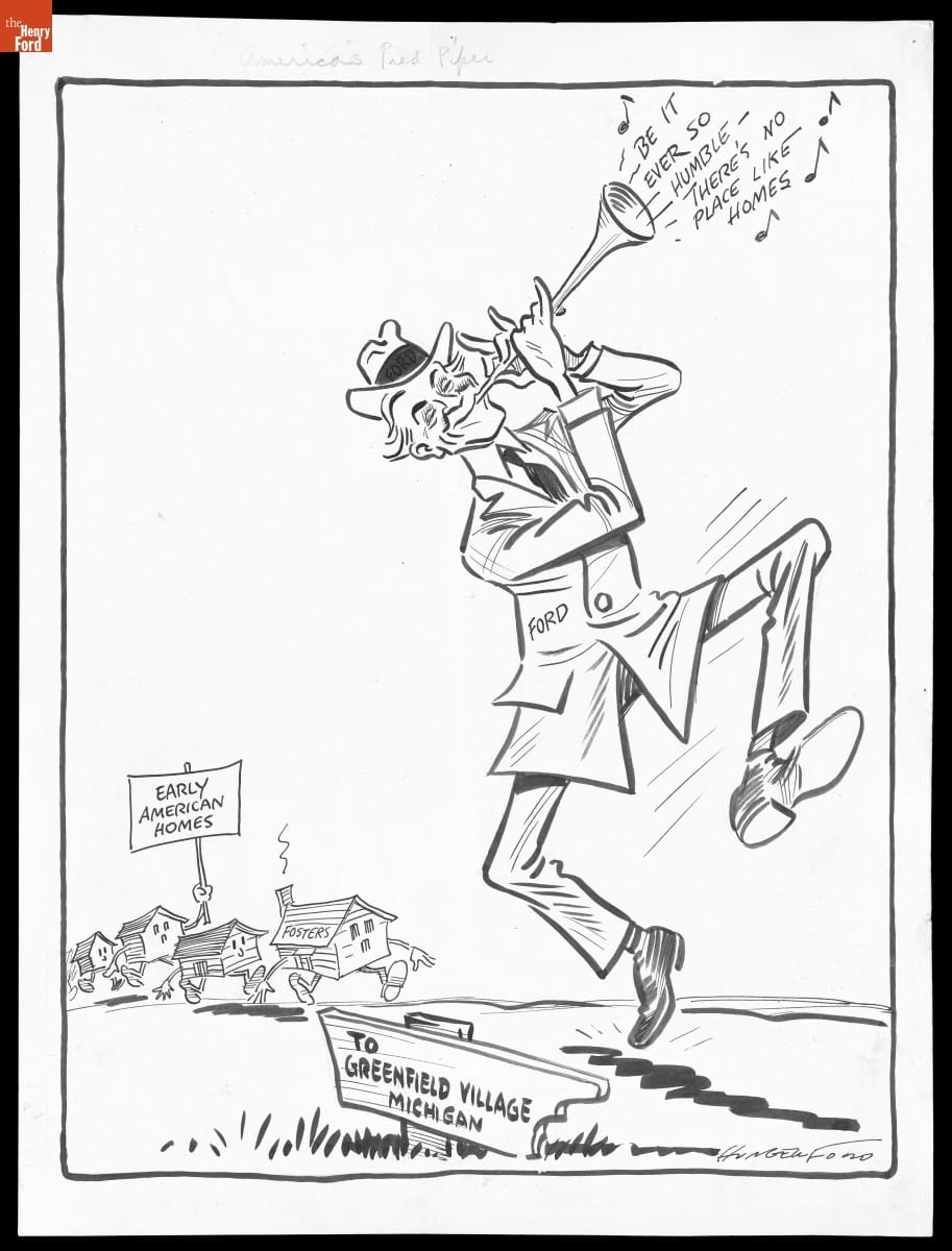 "The Pied Piper," Depicting Henry Ford Leading Early American Homes to Greenfield Village, 1934
