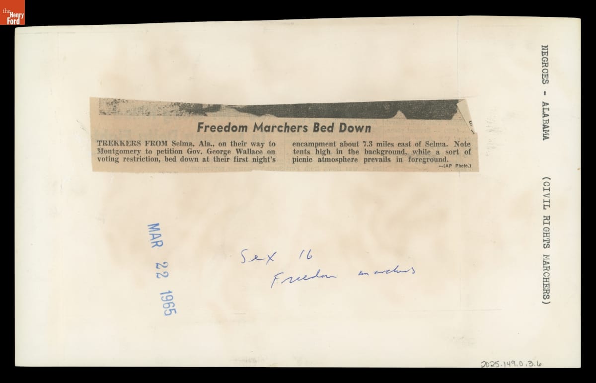 Freedom Marchers on the First Night of the Journey from Selma to Montgomery, Alabama, March 21, 1965