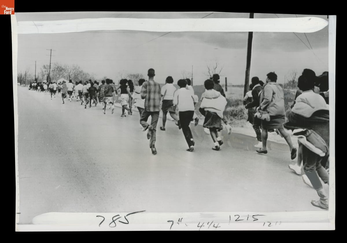 Students Run to Keep up with Sheriff Jim Clark in a 2.5 Mile Forced March out of Selma, Alabama, February 10, 1965