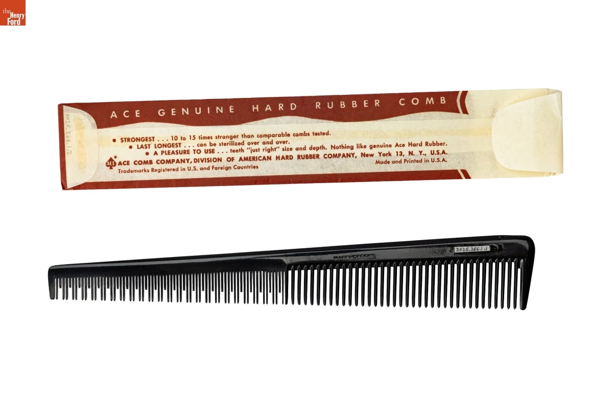 ACE GENUINE HARD RUBBER COMB / [...] / ACE [R] ACE COMB COMPANY, DIVISION OF AMERICAN HARD RUBBER COMPANY, New York 13, N. Y., U.S.A. / Trademarks Registered in U.S. and Foreign Countries Made and Printed in U.S.A.