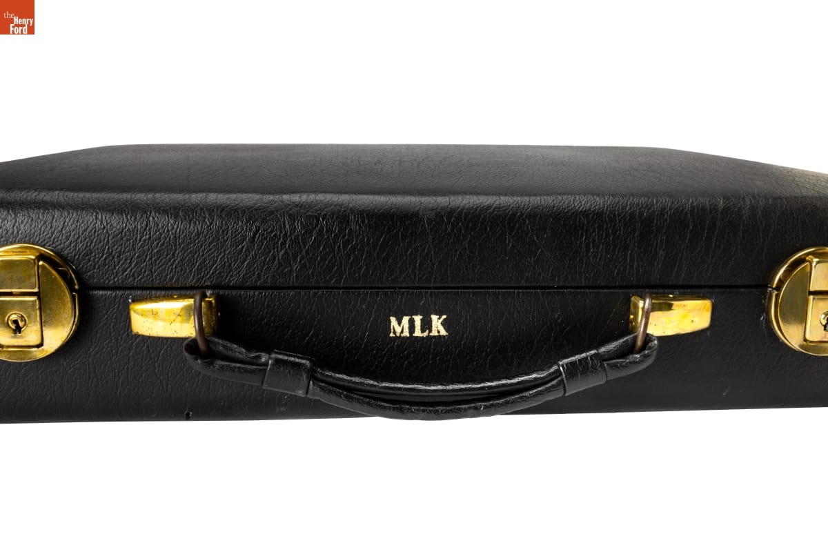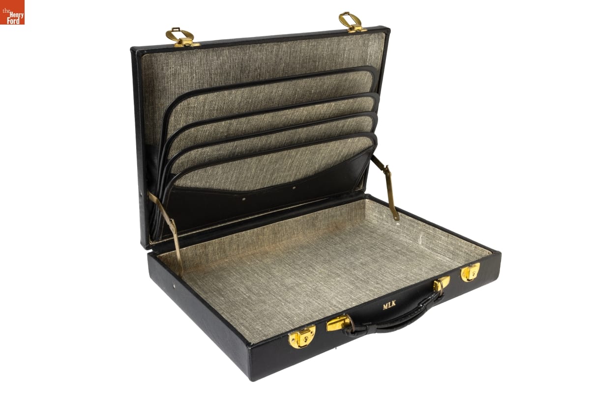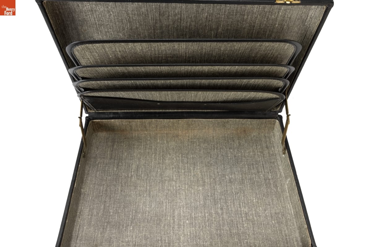 Briefcase made by unknown maker. Naugahyde[TM] covering made by Uniroyal.