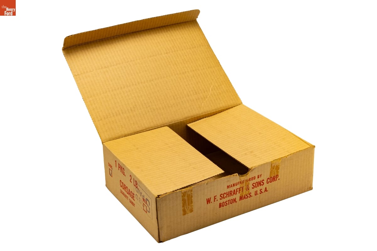 Commissioned by W. F. Schrafft & Sons Corporation, Boston, Massachusetts, and manufactured J & J Corrugated Box Corp., Fall River, Massachusetts.