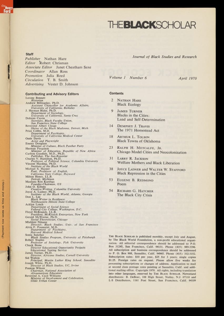"The Black Scholar," April 1970 Issue, "Colonies or City States?"