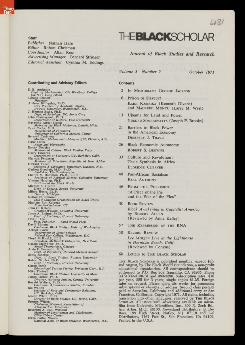 "The Black Scholar," October 1971 Issue, "Black Economics"