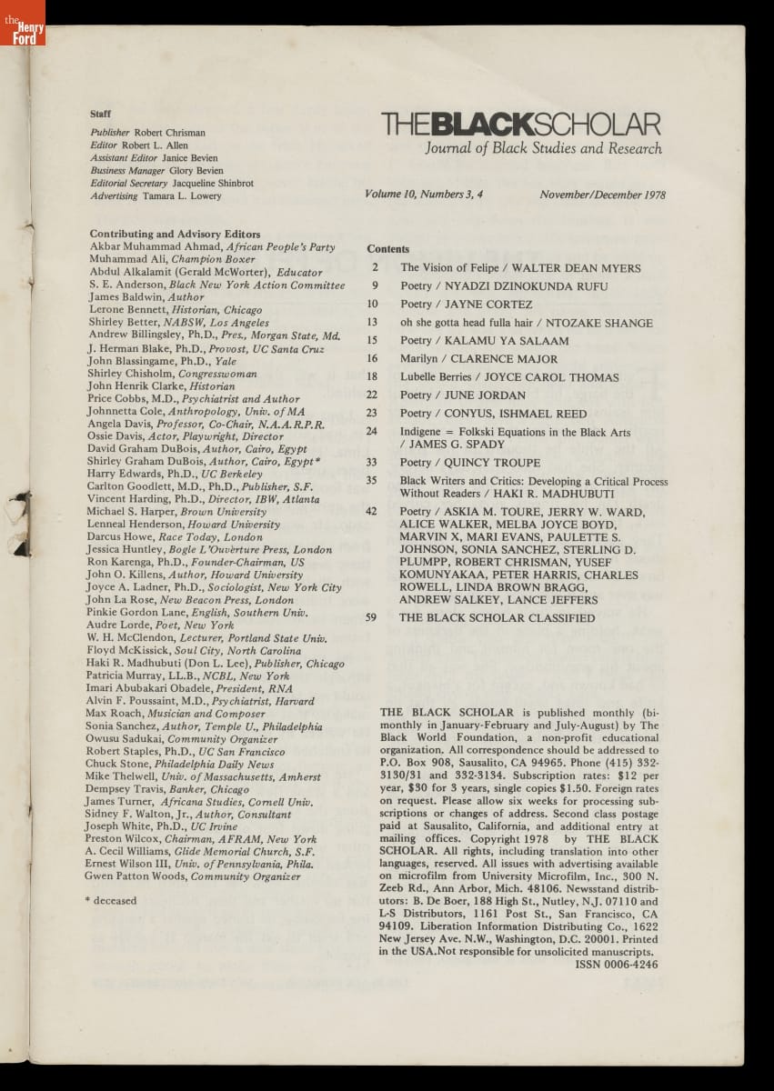 "The Black Scholar," November/December 1978 Issue, "Black Literature"