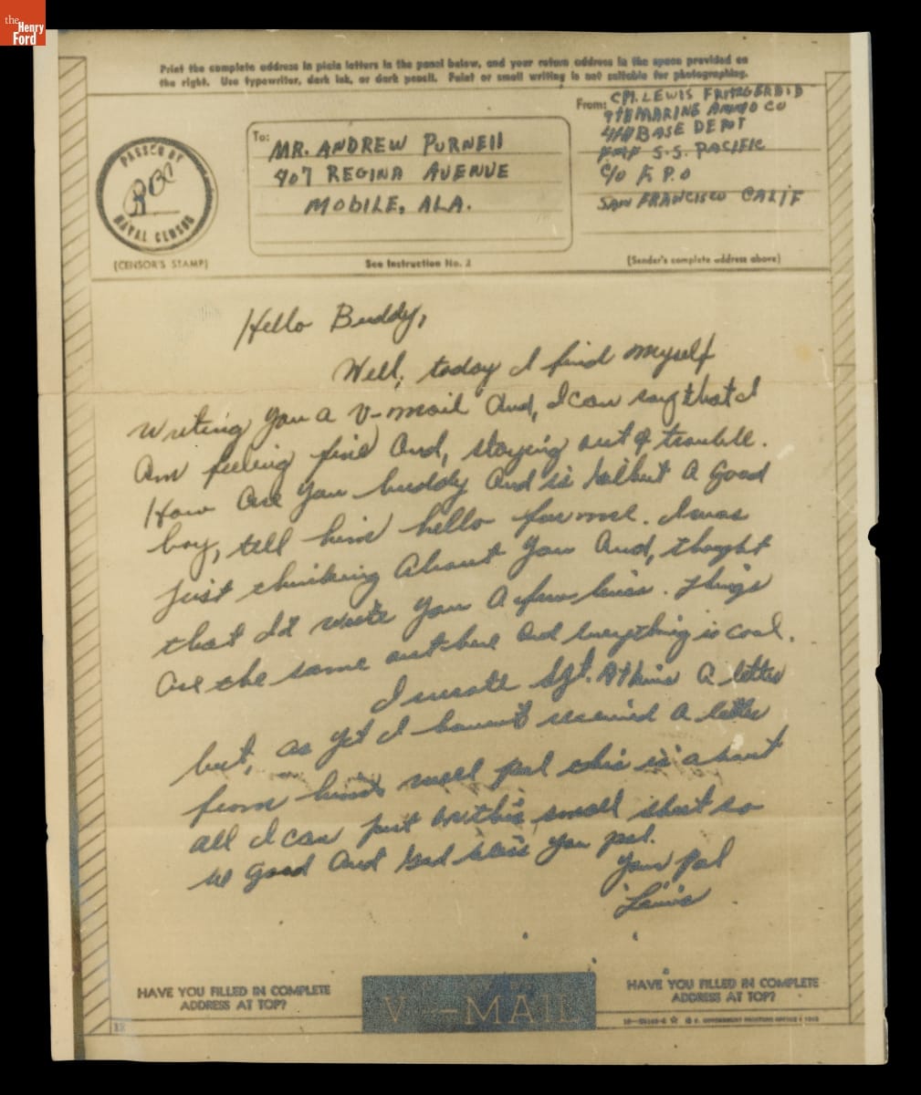 V-Mail Letter from Lewis Fitzgerald to Andrew Purnell